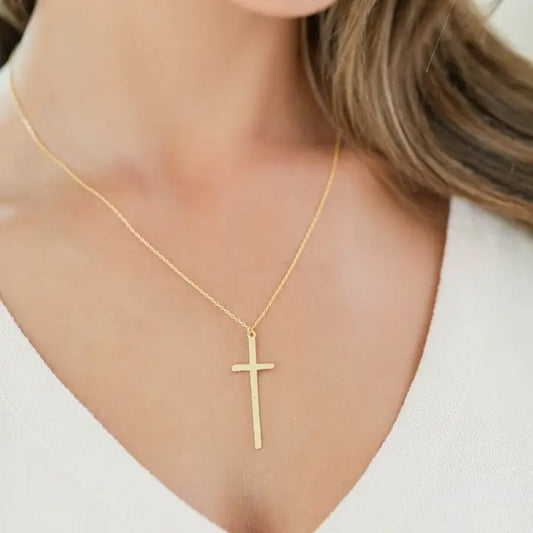 Gilded Slim Cross Pendant Necklace