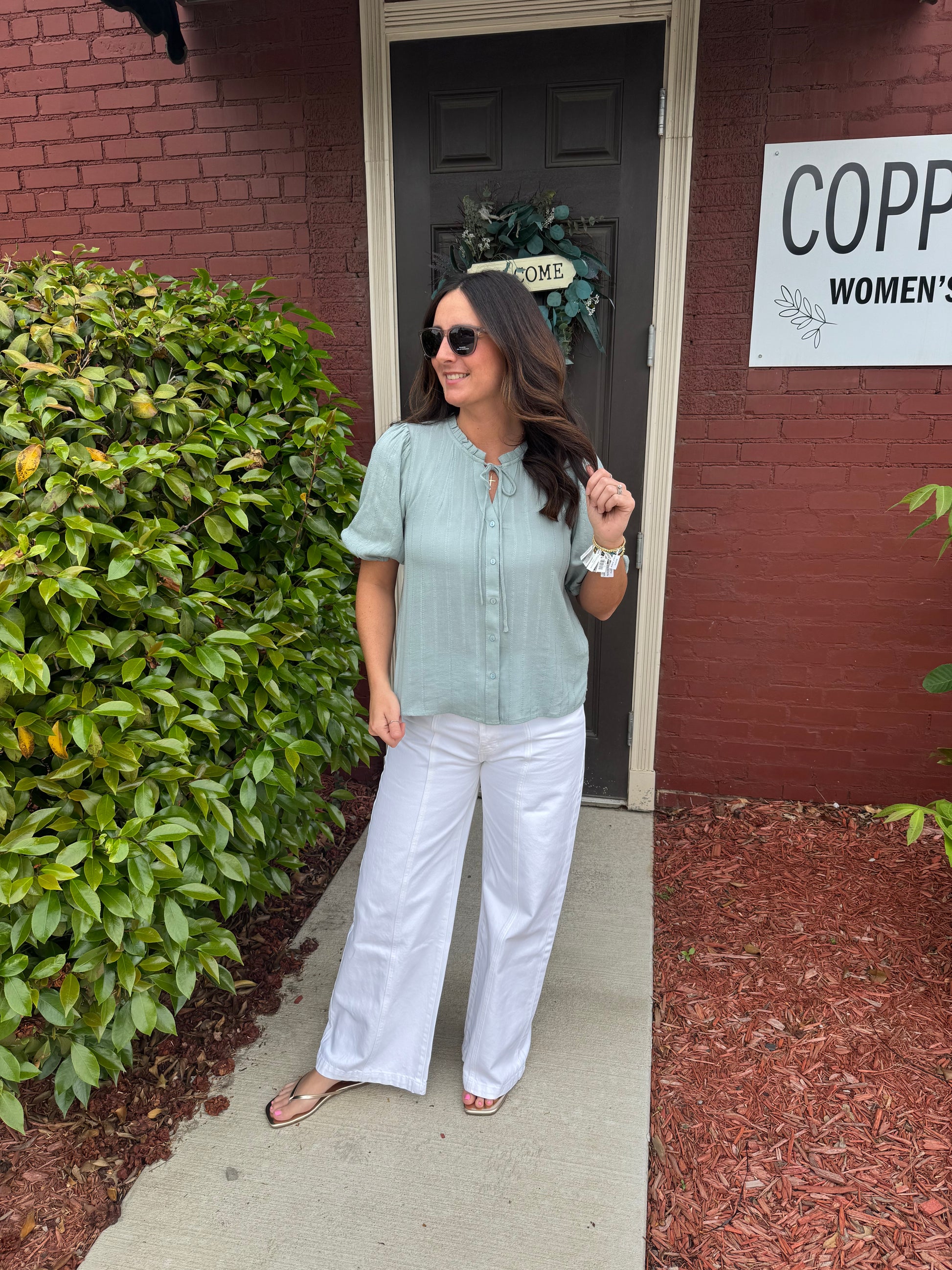 Button Up, Textured Top W/ Tie Detail